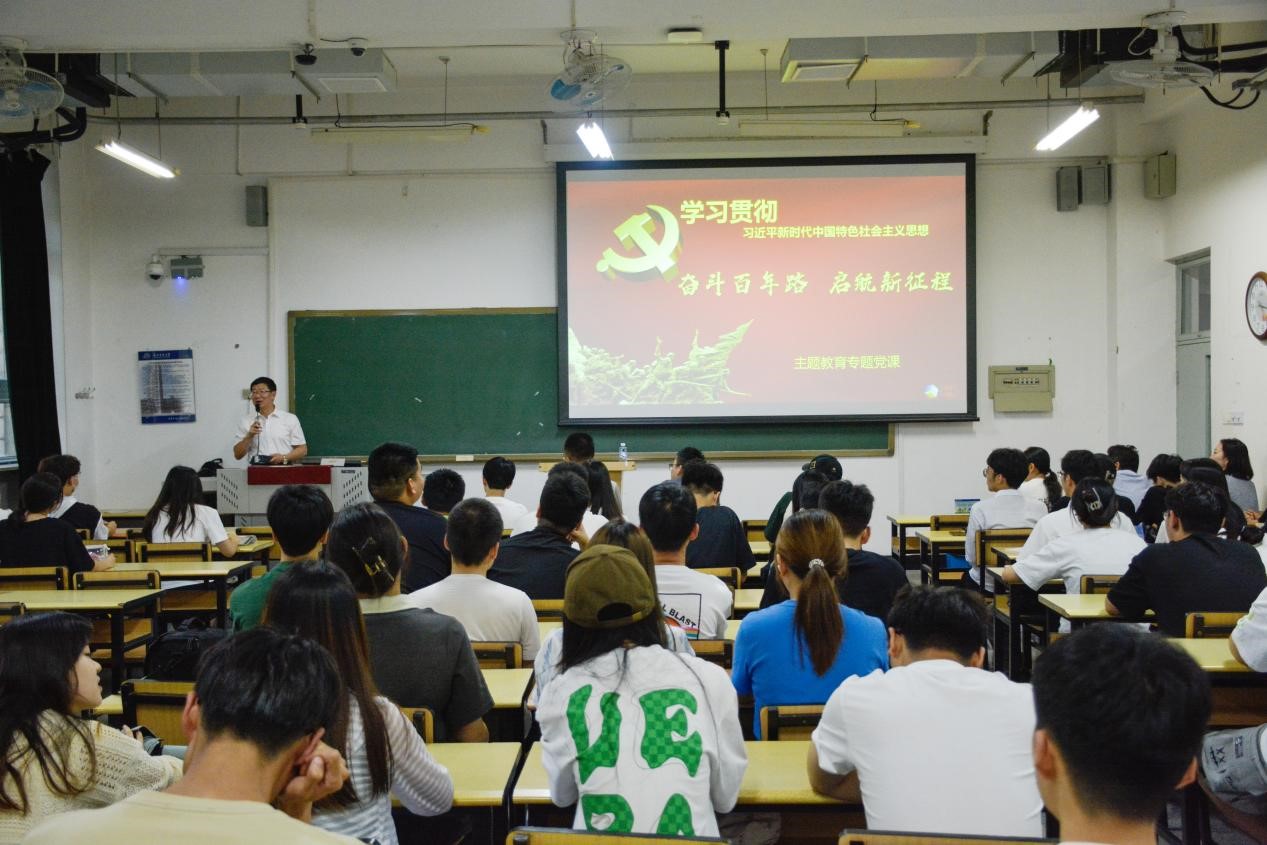 何万山书记以“奋斗百年路,启航新征程”为主题,深入浅出地为同学们开展讲解。从旧民主主义革命的“苦难历史”,到新民主主义革命阶段的“星星之火,可以燎原”。再由社会主义制度的建立和国家建设阶段,讲到探索中国特色社会主义道路期间的“拨乱反正”,最后由改革开放和社会主义现代化建设时期的“康庄大道”和两个一百年奋斗目标“奋斗百年路,启航新征程”结题。课堂上,何书记紧扣党的二十大精神,着重讲解了中国共产党党史,对我们当代青年大学生寄予了厚望。他要求同学们做到勿忘国耻,继往开来,深入学习贯彻习近平新时代中国特色社会主义思想,努力学习专业知识,为实现伟大中国梦,达成第二个百年奋斗目标,全面建成中国特色社会主义现代化国家贡献自己的青春力量。