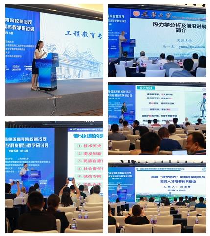 特邀报告环节,天津大学张欢教授以《工程教育专业认证标准解读》为题,清华大学石文星教授以《工科专业课课程思政探索:以建筑冷热源慕课为例》为题,天津大学马一太教授以《热力学分析及前沿进展简介》为题,哈尔滨工业大学张昊春教授以《数字化技术在教学创新中的思考与实践》为题,一楼一凤