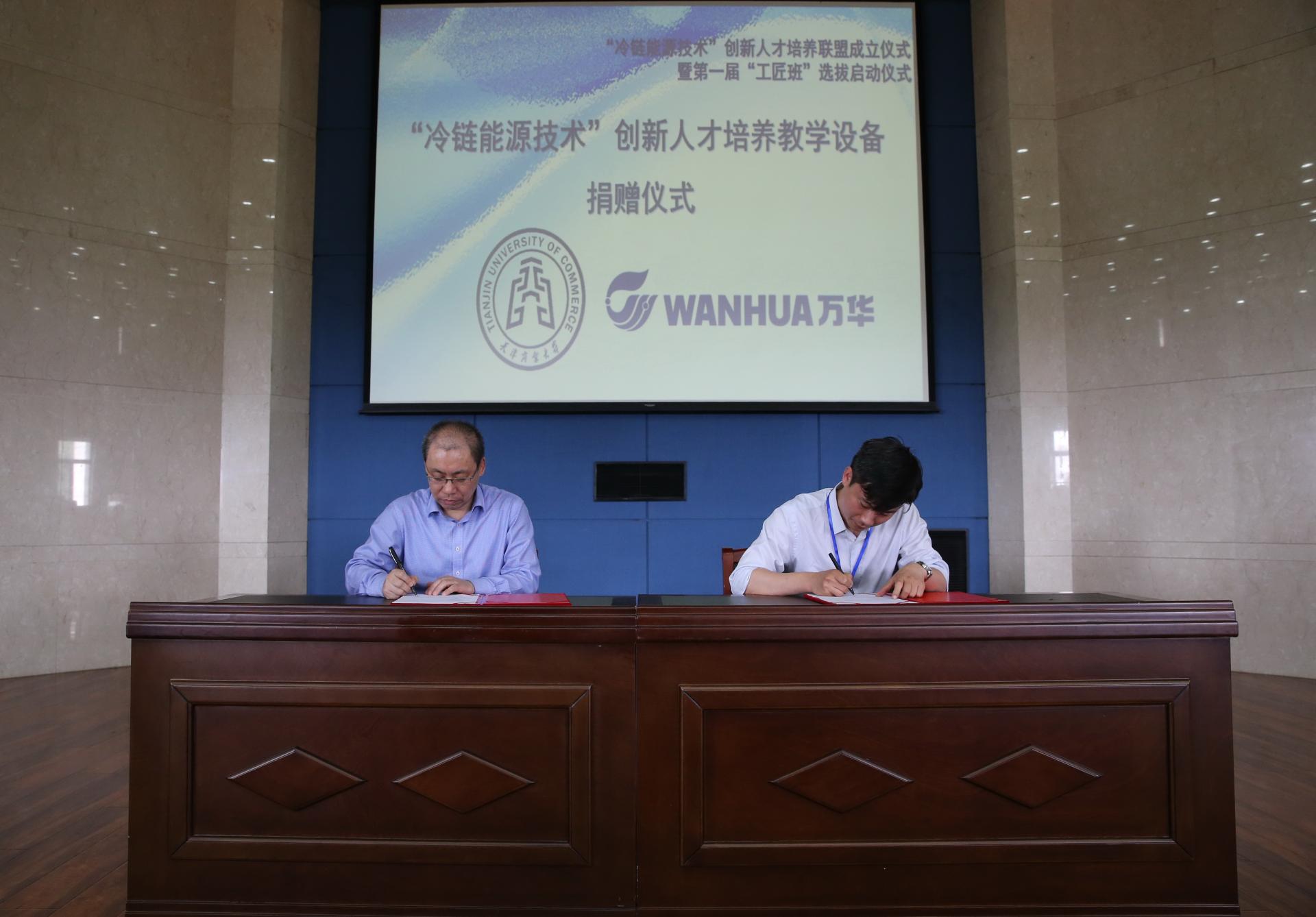 在图书馆举行“冷链能源技术”创新人才培养联盟(以下简称“人才培养联盟”)成立仪式暨第一届“工匠班”选拔启动仪式。校党委副书记、校长葛宝臻,副校长齐恩平、陈冠益出席。27家知名行业、企业、学(协)会相关负责人,党委组织部、党委宣传部、党委教师工作部、党委学工部、教务处、一楼一凤