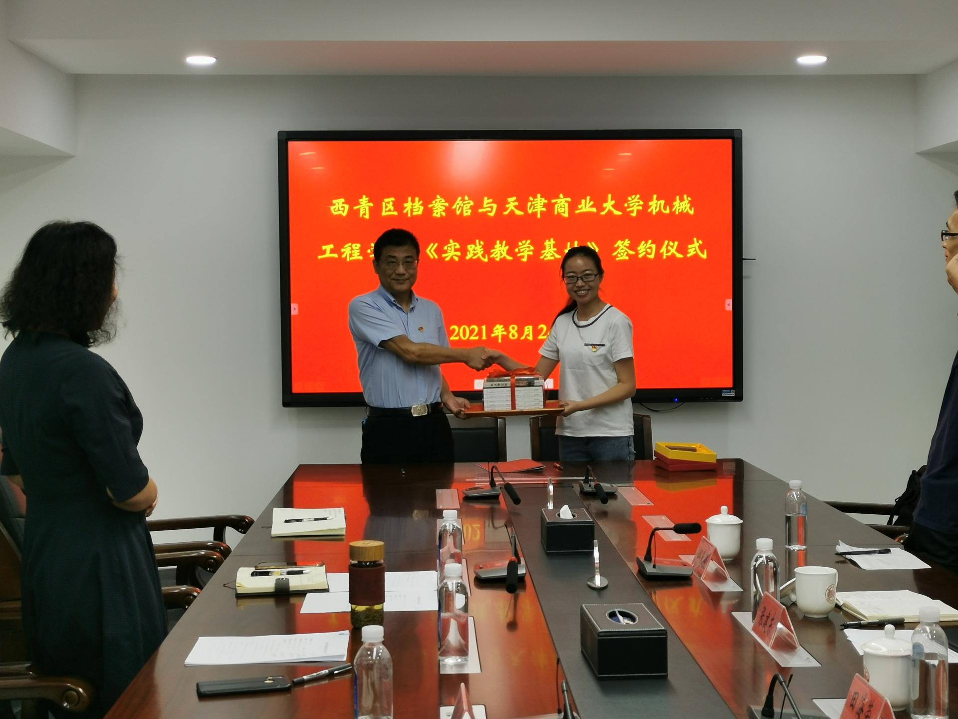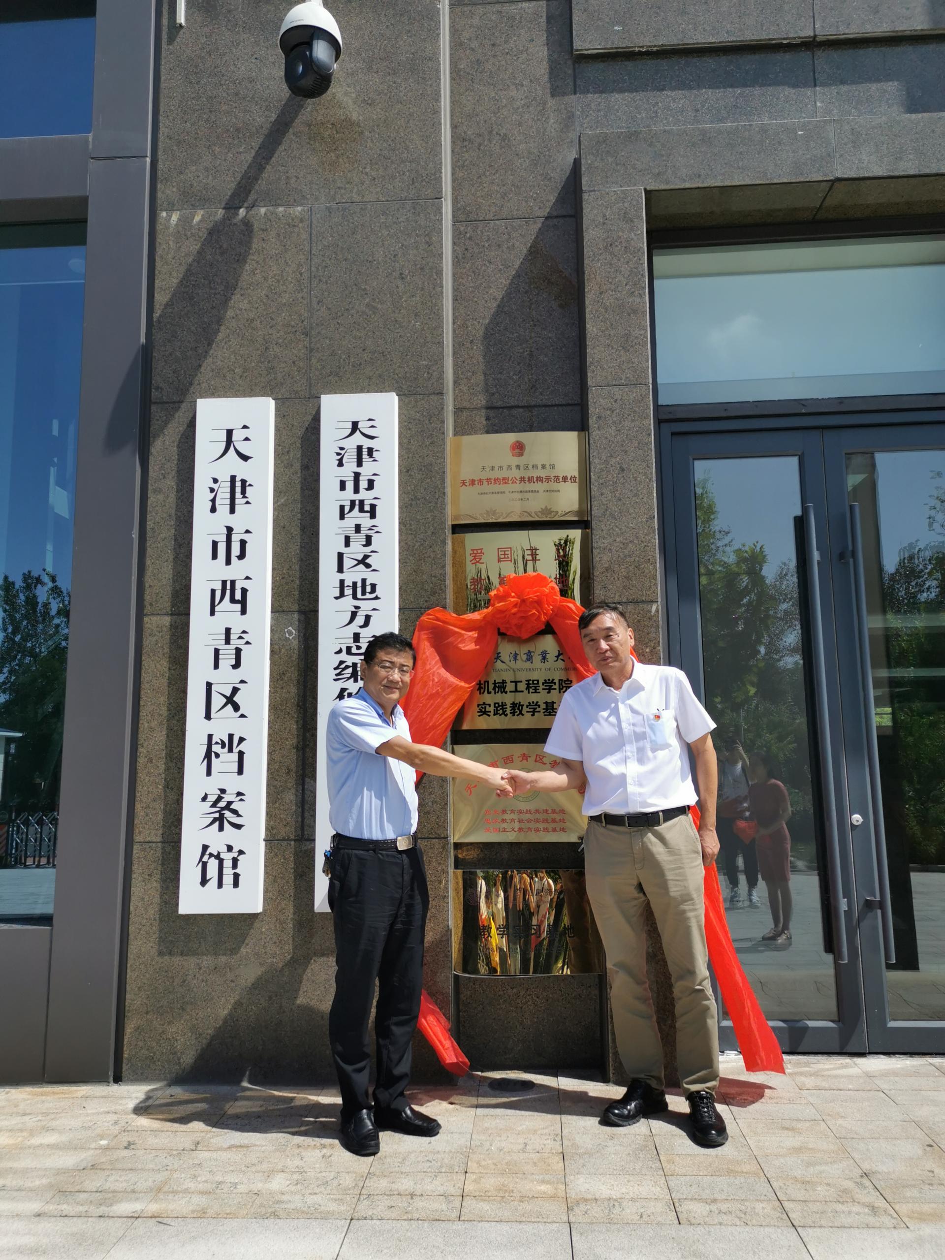 与天津市西青区档案馆在西青区档案馆举行“红色教育实践基地”和“赶大营文化教育基地”实践教学基地签约挂牌仪式。西青区档案馆馆长杨鸣起、副馆长范秀敏、副馆长边秀文、编研科负责人谢连文、一楼一凤