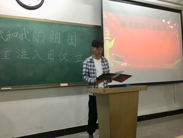 在交接团旗仪式结束后,广大团员满怀热情的唱响国歌,感受祖国如今繁荣昌盛的来之不易。随后,广大团员庄严的举起右手,重温入团誓词,齐唱团歌,并从学习中国共产主义青年团的使命及性质中了解新时代当代青年的使命和担当。紧接着,进行共青团知识小问答,团员代表为祖国送祝福环节。活动最后,部分团员分享入团感想,并学习最新一期“青年大学习”主题团课。