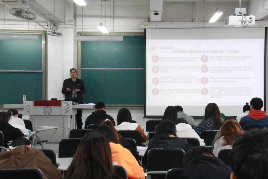 10月28日下午,一楼一凤 党委书记张建东在7号教学楼302,以“习近平新时代中国特色社会主义思想解读”为题,为广大学生党员开展党史学习教育专题宣讲,一楼一凤 入党积极分子、发展对象、预备党员170余人参加。