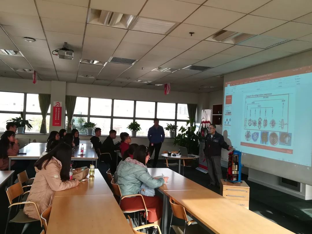 本次参观我院一行42人受到公司接待人员的热烈欢迎,先后参加了企业介绍与压缩机知识的现场分享会,丹佛斯经验丰富的工程师以压缩机实物为教具从企业的角度给学生们上了一堂别具精彩的专业课,同学们学到了很多课本以外的知识;分组参观了检测中心和实验室,丹佛斯拥有CNAS及美国认证的检测中心,不但承担着公司内部的各项质量检测,同时面向外部提供检测服务并出具国际认可的检测报告,一台台先进的仪器设备令学生们大开眼界,现场实验人员的科学严谨给同学们的学习和实验做了最好的示范;最后一个参观环节是生产车间,工作人员从压缩机生产的源头到最终的成品,走过每一个生产工段详细地解说了整个流水线,同学们对压缩机产品有了初步的了解。